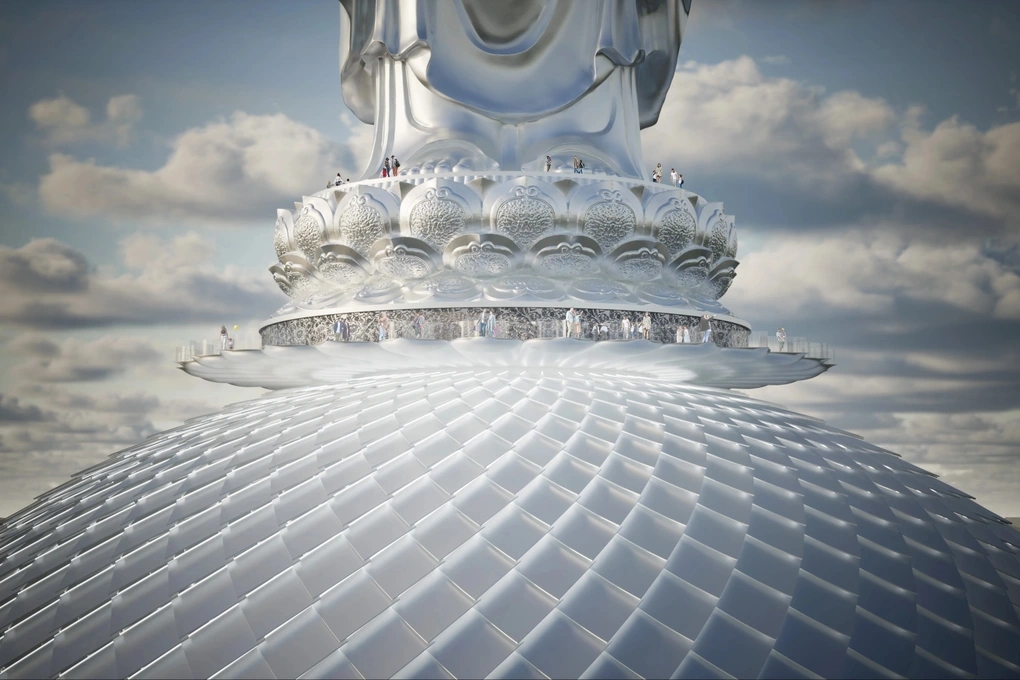 Đặc biệt, Tôn tượng Phật Đại Nhật Như Lai đứng uy nghi trên đài sen trắng cao 13,6 m, với hoa văn được mô phỏng theo phong cách sen thời Hậu Lê. Bên dưới đài sen là khối đế cao 45 m, với mái vòm hình hoa sen trắng.